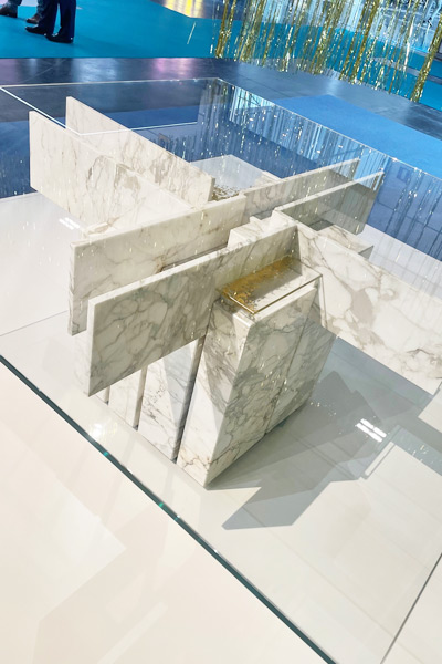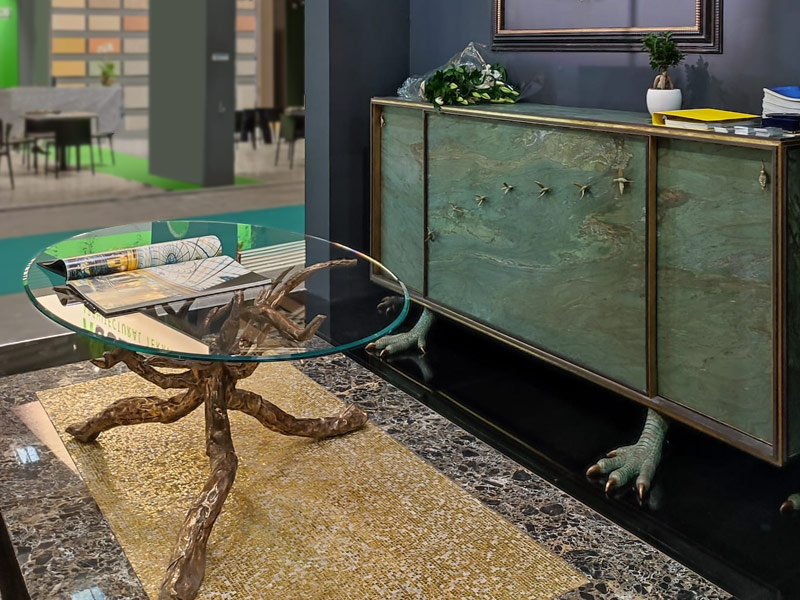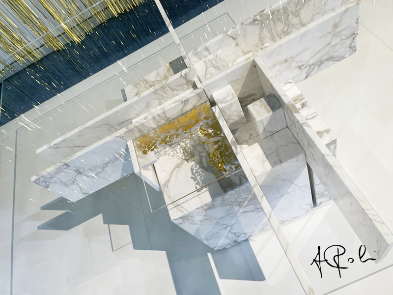 The table, with its emblematic name, is made up of pure geometries. The table is born as an epicentric aggregation of matter concentrated around a fulcrum. It takes generative and virtuous inspiration from the world of the master Albano Poli.