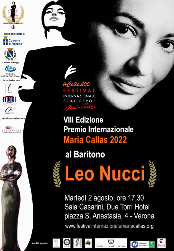 Il premio dell’VIII edizione del Festival Internazionale Scaligero Maria Callas va a Leo Nucci, baritono che si è distinto in particolare nel repertorio verdiano e pucciniano. Leo Nucci gode di una longevità vocale che ha pochi precedenti e qui a Verona è stato acclamato nel ruolo di figaro in Arena, nel 2018, dove ha concesso il bis del brano Largo al factotum.